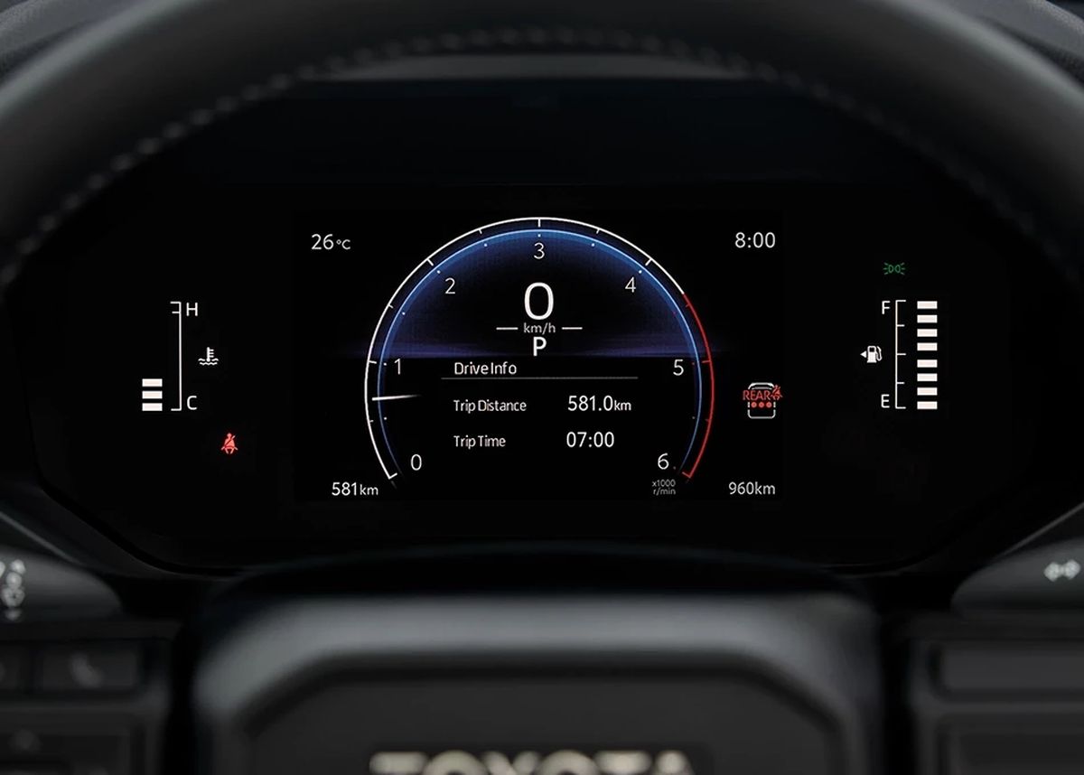 内装面でも大幅な進化を遂げています。新型ハイラックスのインテリアは、ランドクルーザー250やランドクルーザーFJのような武骨でタフな印象を与える仕様に刷新されました。